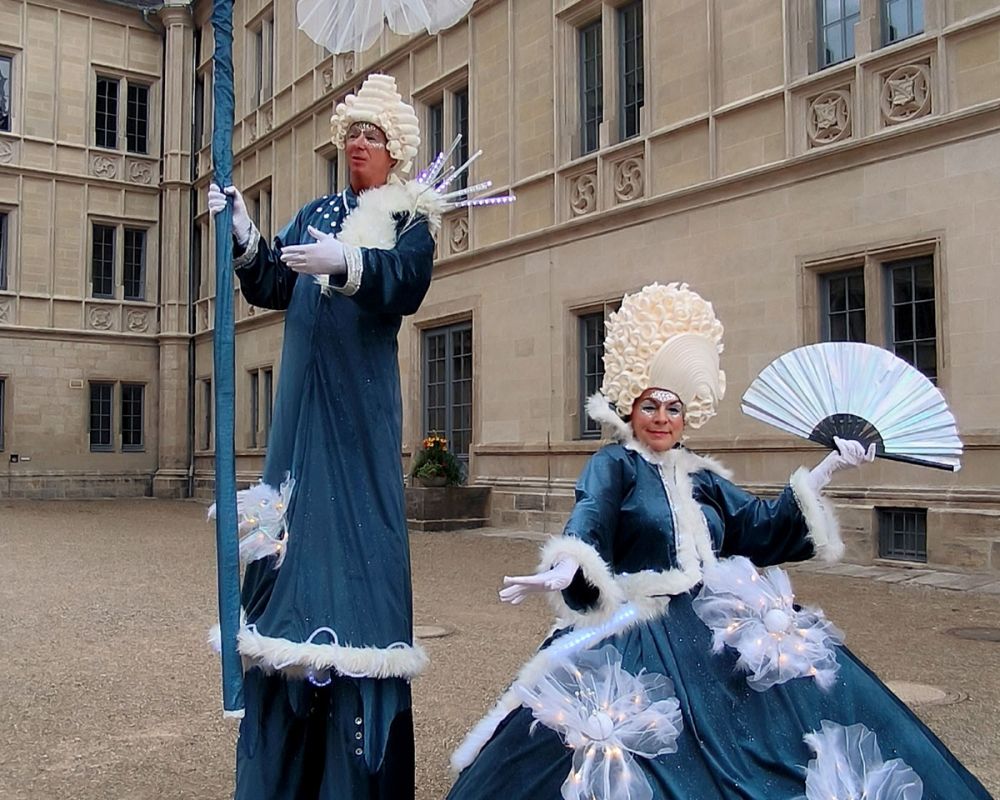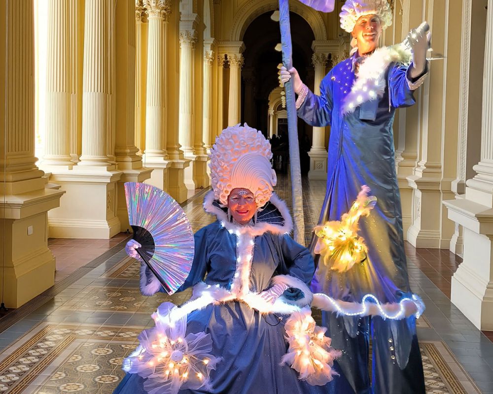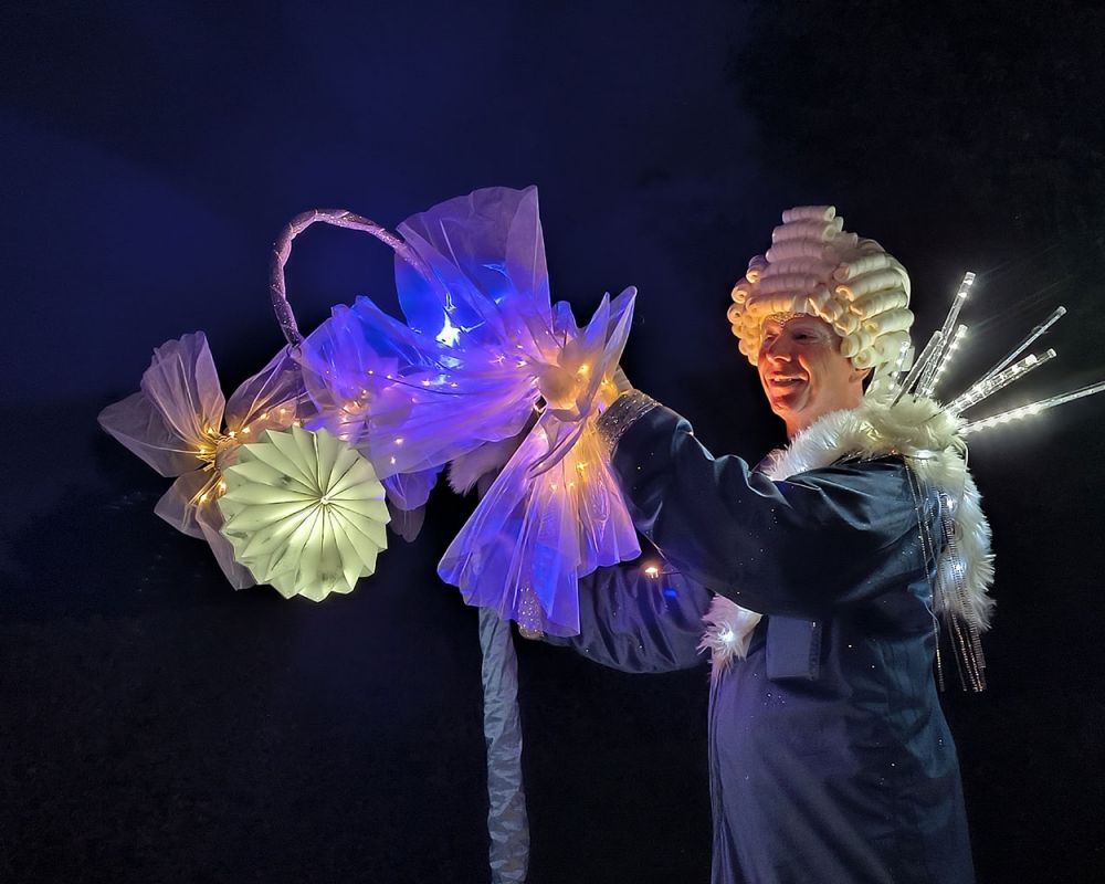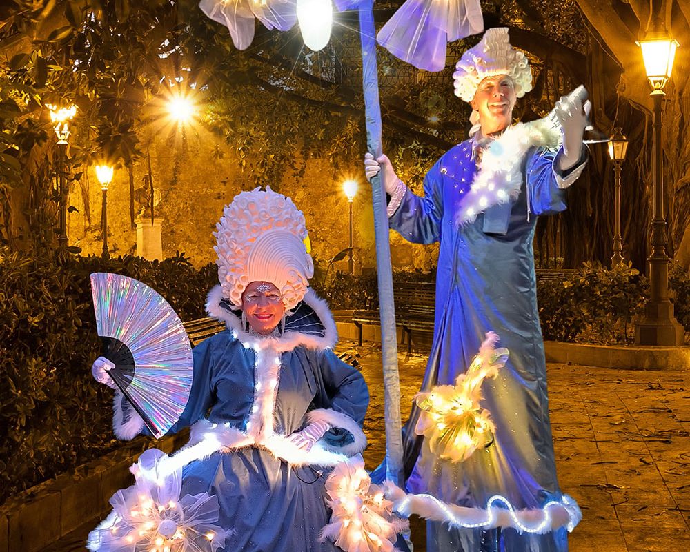 Wenn die Dämmerung hereinbricht, erwacht Royal Kristall zum Leben. In prachtvollen Kostümen, verziert mit funkelnden Lichtern und zarten Blüten, entführt dieser einzigartige Walk Act die Zuschauerinnen und Zuschauer in eine glanzvolle Zeit voller Eleganz und Anmut.